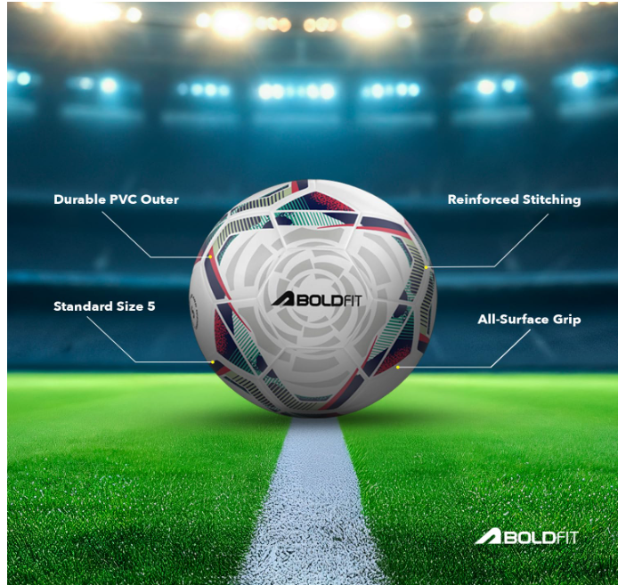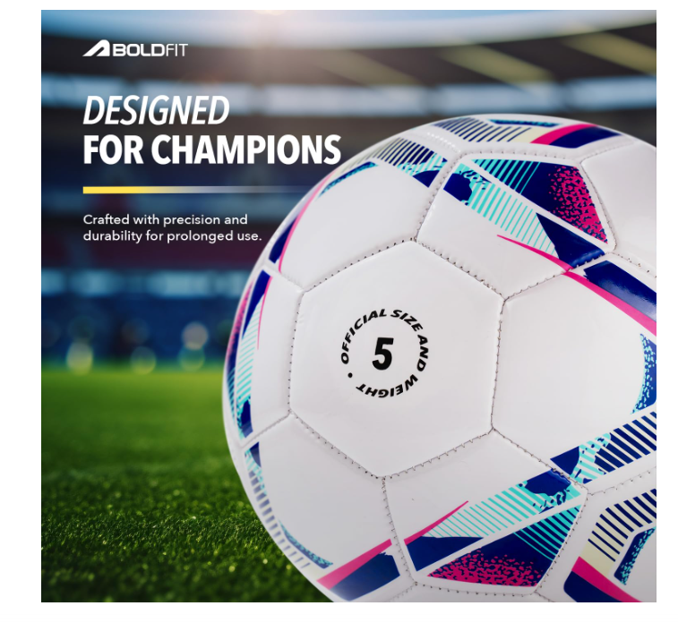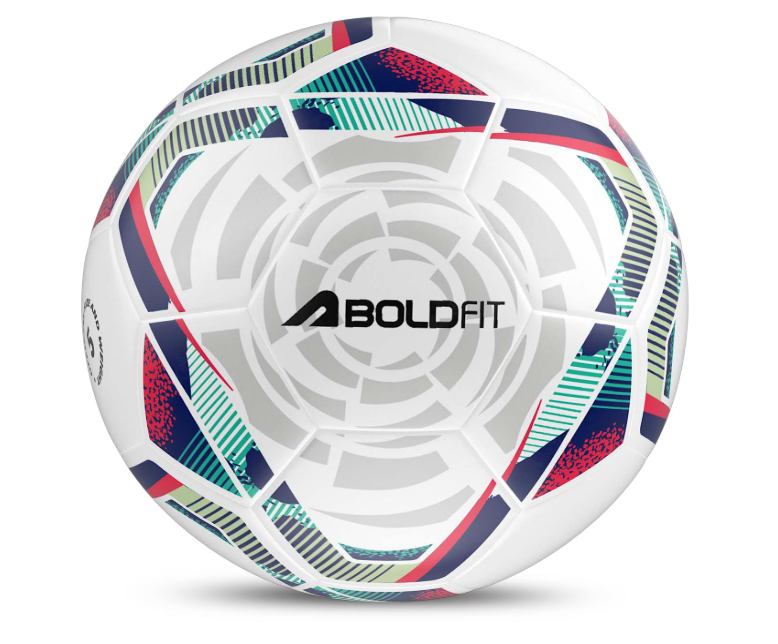 Boldfit Football Practise Foot Ball Training Football Size 5 Original for All Ages Group PVC Stitched Standard Sports Foot Ball for Ground, Grass, Turf, Outdoor Waterprooof – Blue Pink Size 5